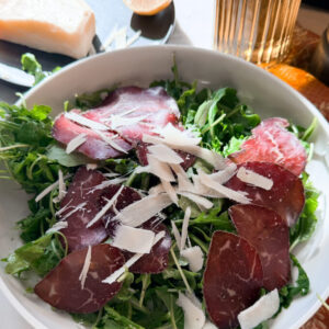If you’re like me and love a good beef carpaccio, then you’re going to fall in love with this Bresaola Salad. It gives you all the flavors and elegance of carpaccio — thinly sliced beef, peppery greens, salty cheese, and bright lemon — without the risk of serving raw meat.