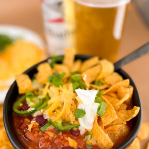 Ladle generous portions into bowls and pile on the toppings: sharp cheddar, sour cream, Fritos, diced onions, or even extra peppers if you’re brave.