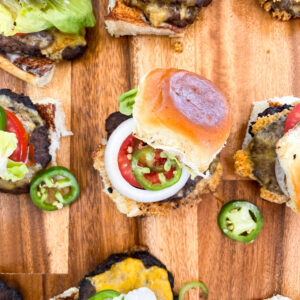Each bite hits all the right notes — cheesy, tangy, buttery, and a little spicy. Plus, these sliders are easy to assemble in batches and even easier to devour. Pile them high with your favorite toppings — lettuce, tomato, onion, pickles, jalapeños — or make a mini slider bar for guests to customize their own.