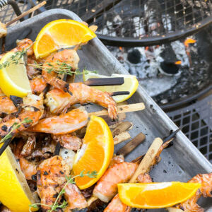 Shrimp has been one of my favorite foods since I was a kid — I even requested it every year for my birthday meal. So when I got this wood-burning fire pit from Lowe’s that doubles as a cooking station, it only seemed right to make this Woodfired Citrus Garlic-Herb Shrimp.